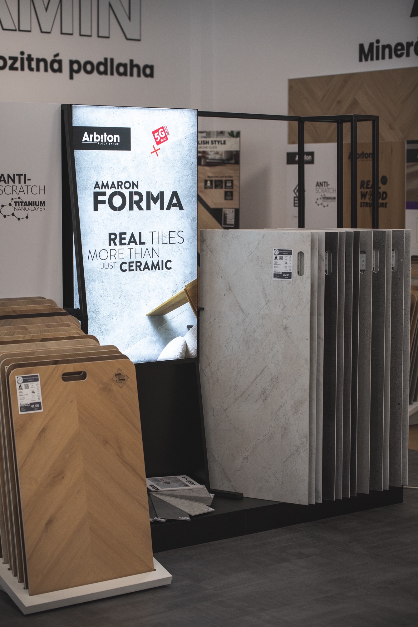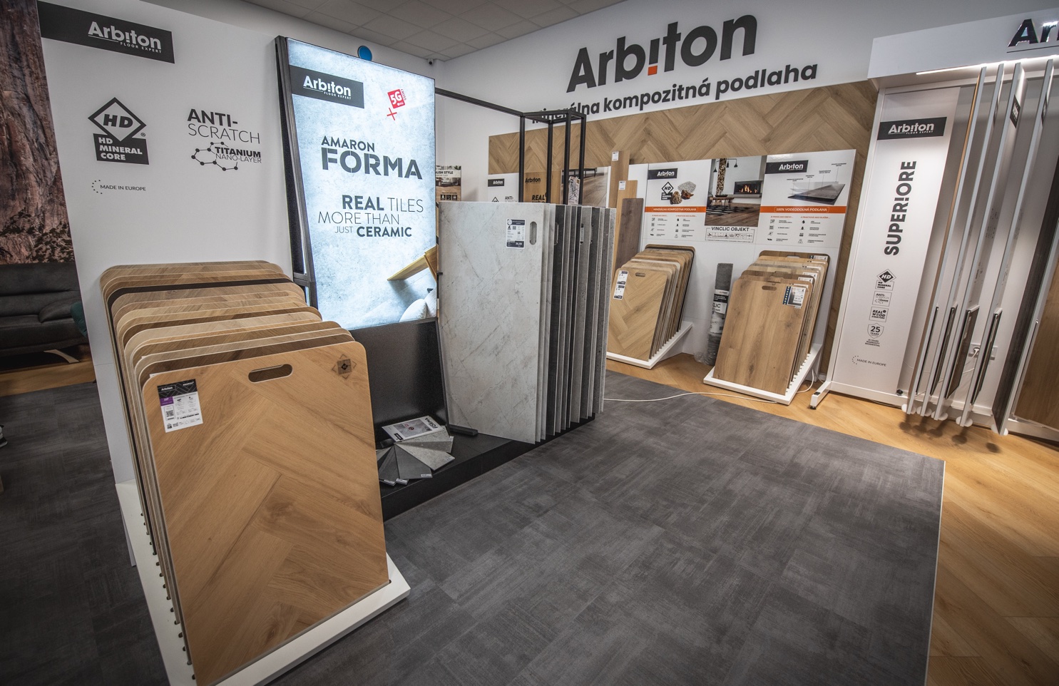 Špeciálnymi hosťami boli zástupcovia značky Arbiton pre slovenský a český trh, ktorí predstavili novinky Amaron CHEVRON a Amaron FORMA. Predstavovaná kolekcia Amaron CHEVRON vyniká svojim jedinečným vzhľadom v populárnom štýle CHEVRON, ktorý bol prezentovaný v prevedení minerálnych kompozitných podláh. Zástupcovia značky Arbiton taktiež predviedli praktickú ukážku inštalácie podlahy v tomto štýle. Ďalej predstavili novú kolekciu Amaron FORMA, ktorá pozostáva z 12 betónových a kamenných dekorov a vďaka inovatívnemu systému 5G cross connection je možné ju inštalovať do tvaru klasickej dlažby bez potreby prekladania jednotlivých radov. Predstavenie kolekcie Amaron FORMA taktiež obsahovala praktickú ukážku jej inštalácie.