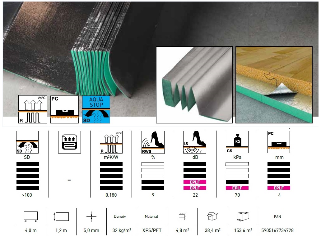 Podložka pod plávajúce podlahy ARBITON AQUASTOP 5MM